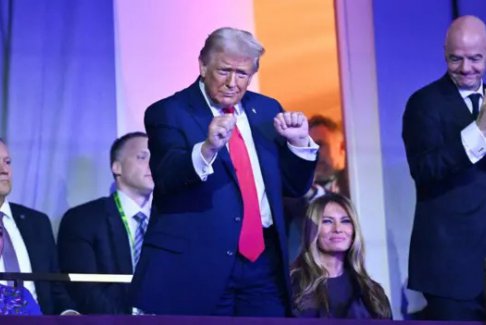 世界杯抽簽儀式結(jié)束后,美國(guó)總統(tǒng)唐納德·特朗普站起身來(lái),隨著鄉(xiāng)村樂(lè)隊(duì)演唱的《YMCA》起舞。